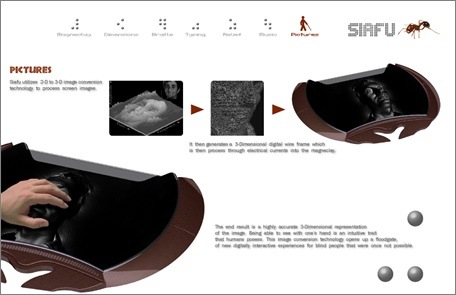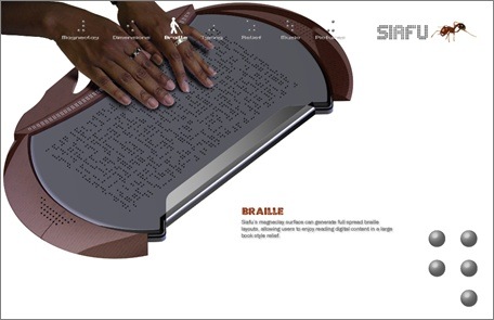 Siafu is a PC designed to give sight-challenged people a more intuitive computing experience. It gives digitally tactile interface that completely revolutionizes the way that blind people interact with a computer.